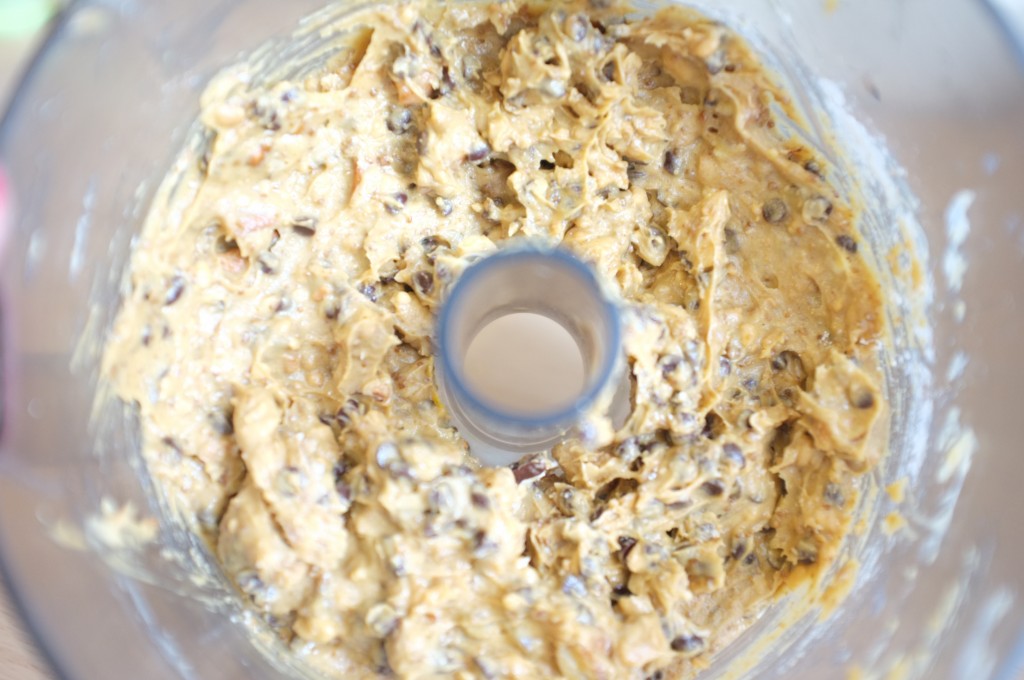 - Verser les pépites de chocolats et les noix de pécan. La pâte va être crémeuse et collante.