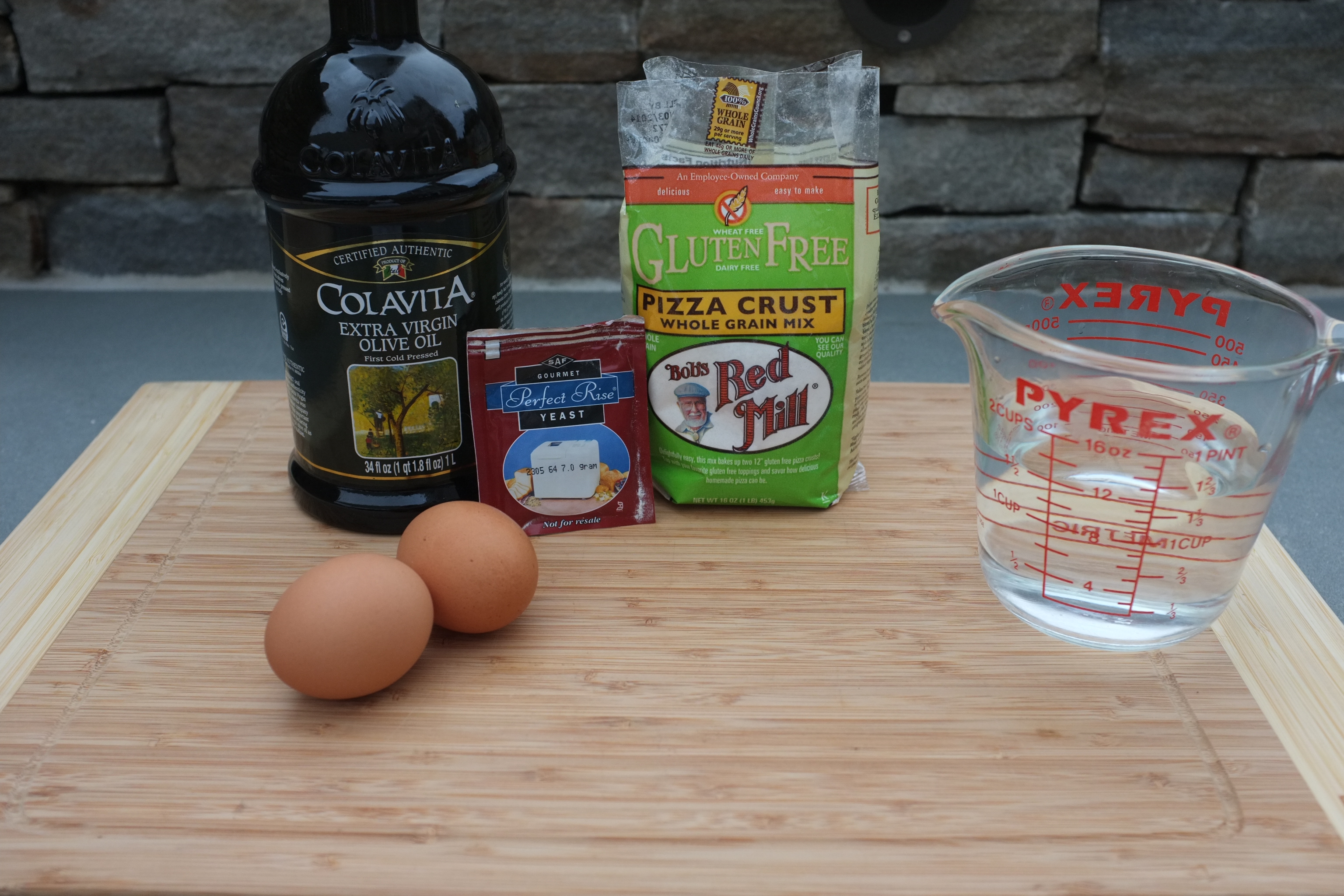 - 453 g de mix « pizza crust » ( pâte à pizza) Bob Red’ Mill : composition: farine de riz complet, fécule de pomme de terre, farine de millet, farine de sorghum, farine de tapioca, farine de pomme de terre, sucre de canne, gomme xanthan, gomme de guar, sel.